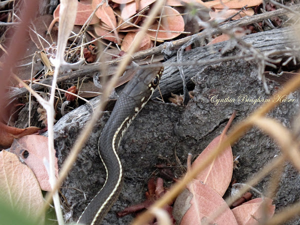 August 23 was a good day for snakes on pine ridge trail. We saw this speedy fellow, a california kingsnake, and a gopher snake, and we just missed seeing a rattlesnake on the trail. So i went back today on another snake hunt and came across this cute little guy. This snake relies on its large eyes and excellent vision to locate prey. Dull brown with two cream lines on both the sides: